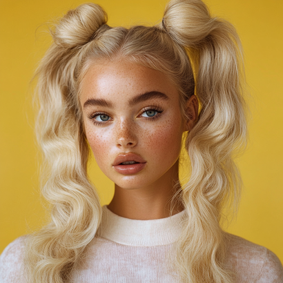two drawstring ponytail attachments for creating bunch and pigtail styles .